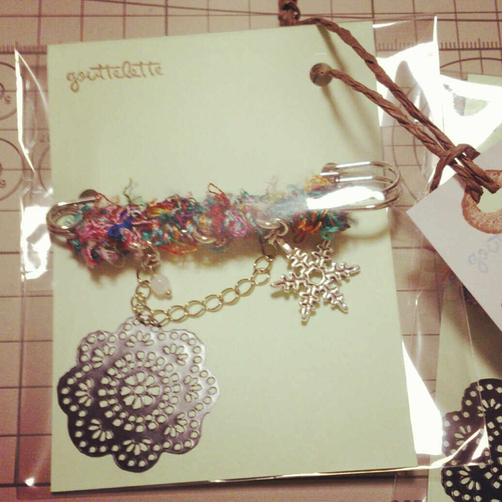 あとお初のストールピン☆こんな感じでラッピング☆家に二つしかなかったカブトピン。これはこれで可愛いー!!…明朝は6時前おきなので、もうねなきゃー。