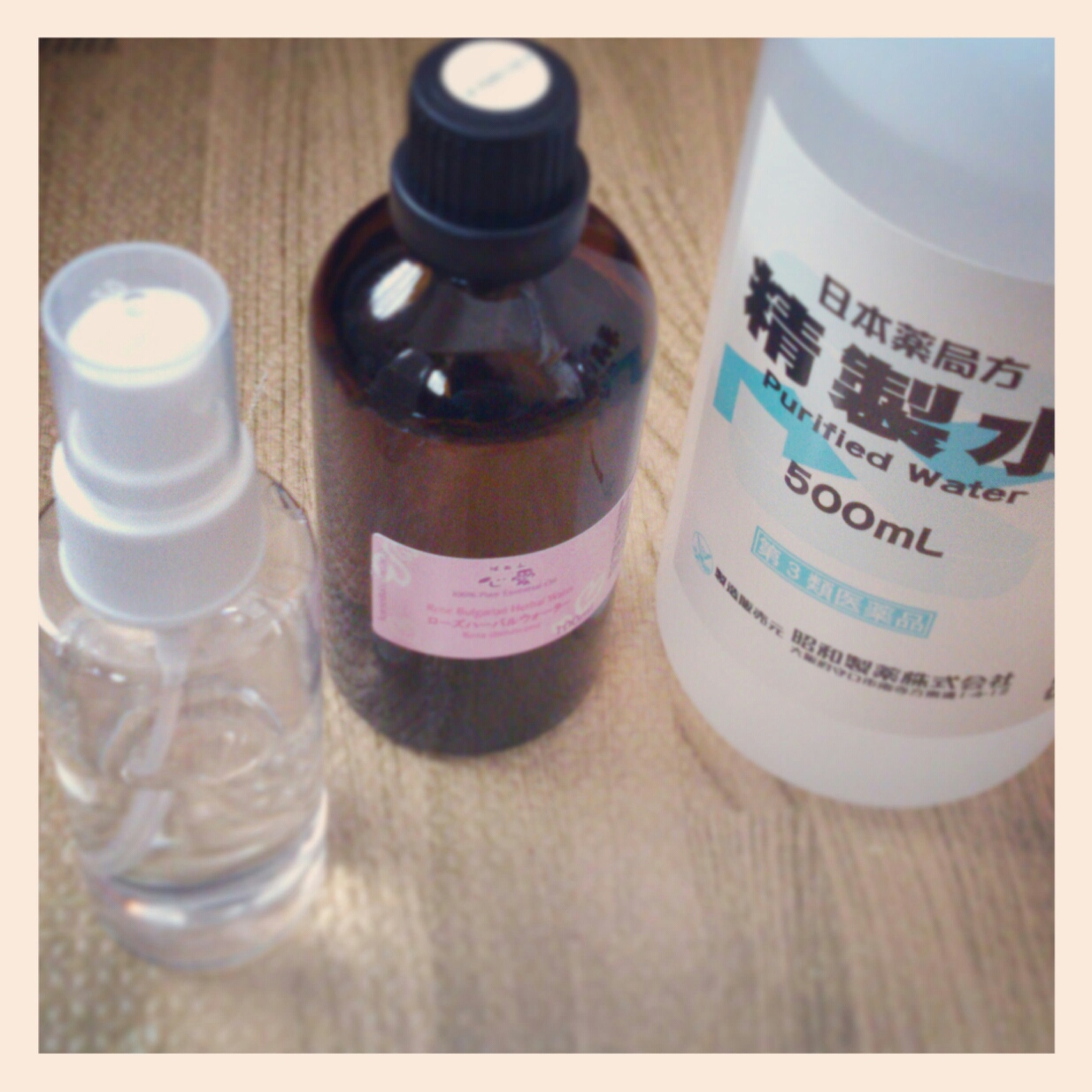 午後は、先日の恋するトマトのプチマルシェで買った心愛さんのローズハーバルウォーターと精製水で顔と髪の毛用のローション作りました。