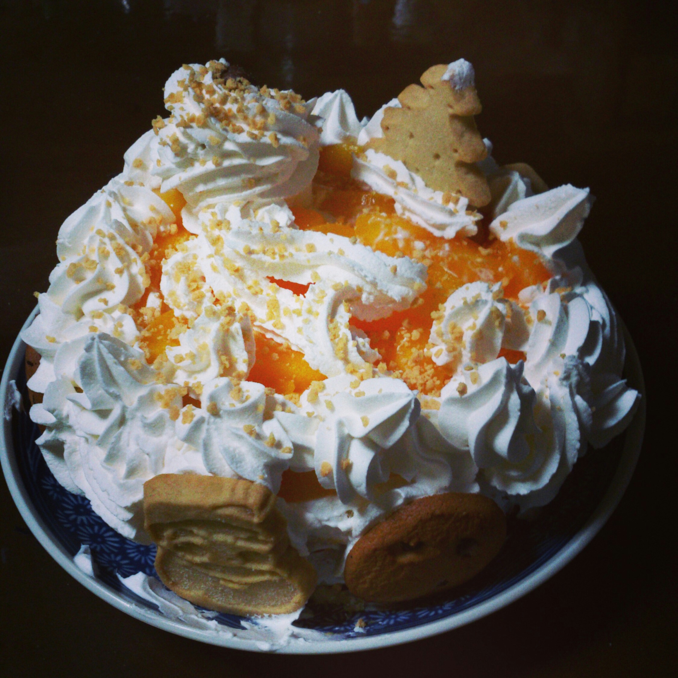 生クリームにとぐろ巻かれてるのはチョコのサンタさん。