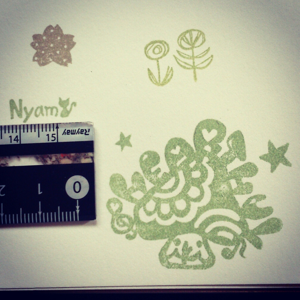 右上はCafe shalomさんへ納品したお花はんこ。