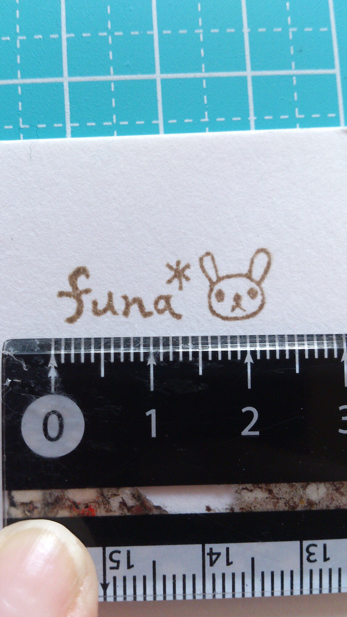 STI のメンバーの編みぐるみのfuna*ちゃんの小さい屋号はんこ。