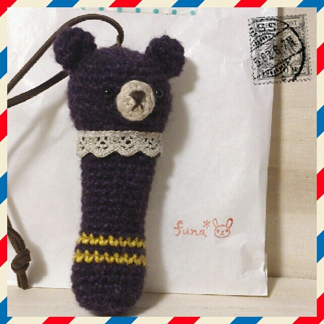 この編みぐるみのリップケースはfuna*ちゃんの。私好みの紫を編んでくれてました!