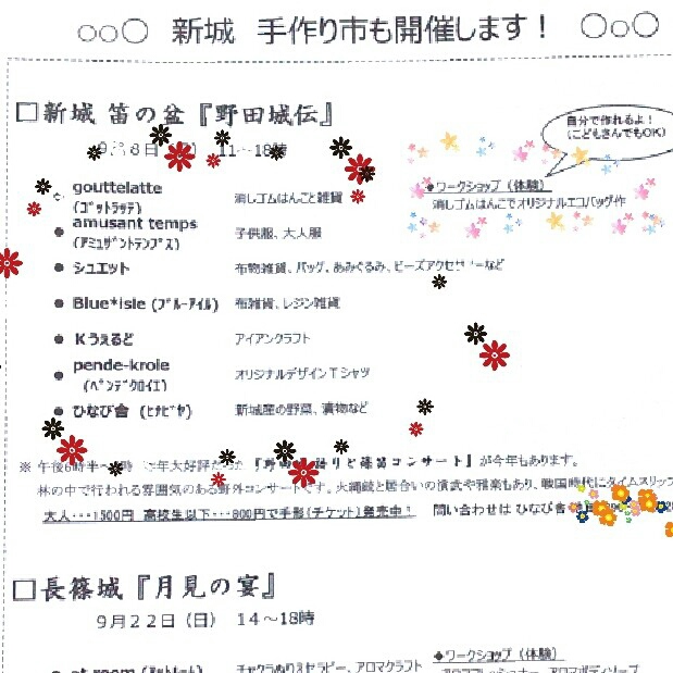 次は、22日(日)に長篠城で「月の宴」(14:00~18:00)に参加し、ワークショップを行います。