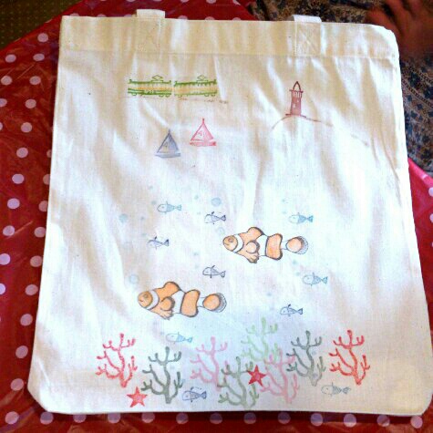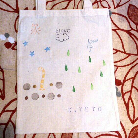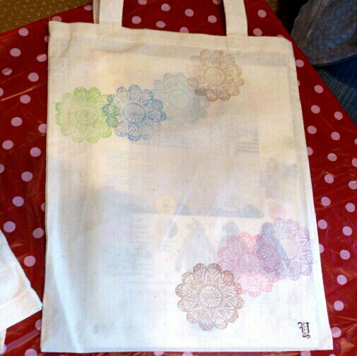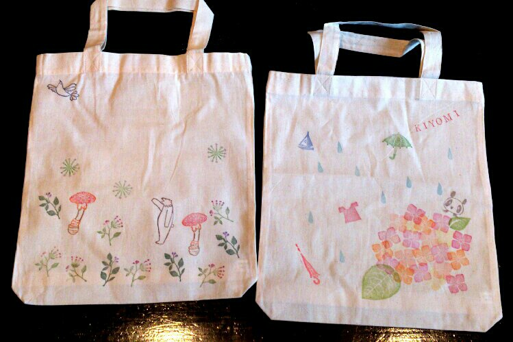 みなさん、ペタペタと好きなだけエコバッグに押してくれましたー!