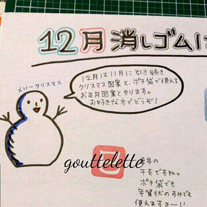 あと、12月版の消しゴムはんこ教室の図案のペラ。