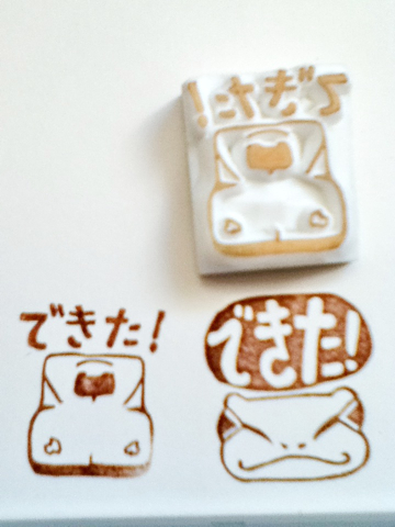 hanacomoちゃんの糸2巻きと、kockaさんのゴム版はんこ。