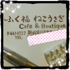 私は、というとハッピーハンドの会の会場だった 喫茶店ふく福ねこうさぎ さんからのオーダーはんこを彫ってます。