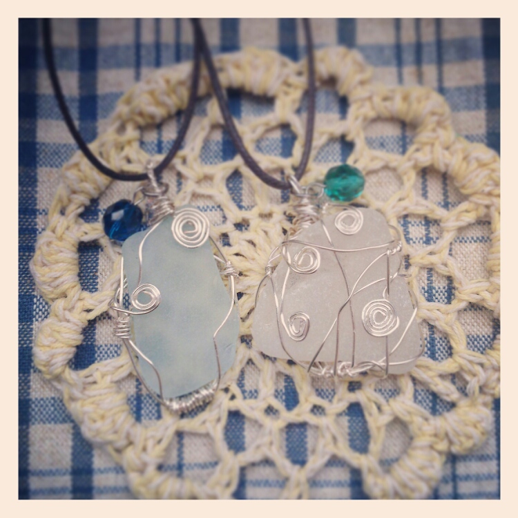 左は在庫ありませんが、シーグラスのペンダント。