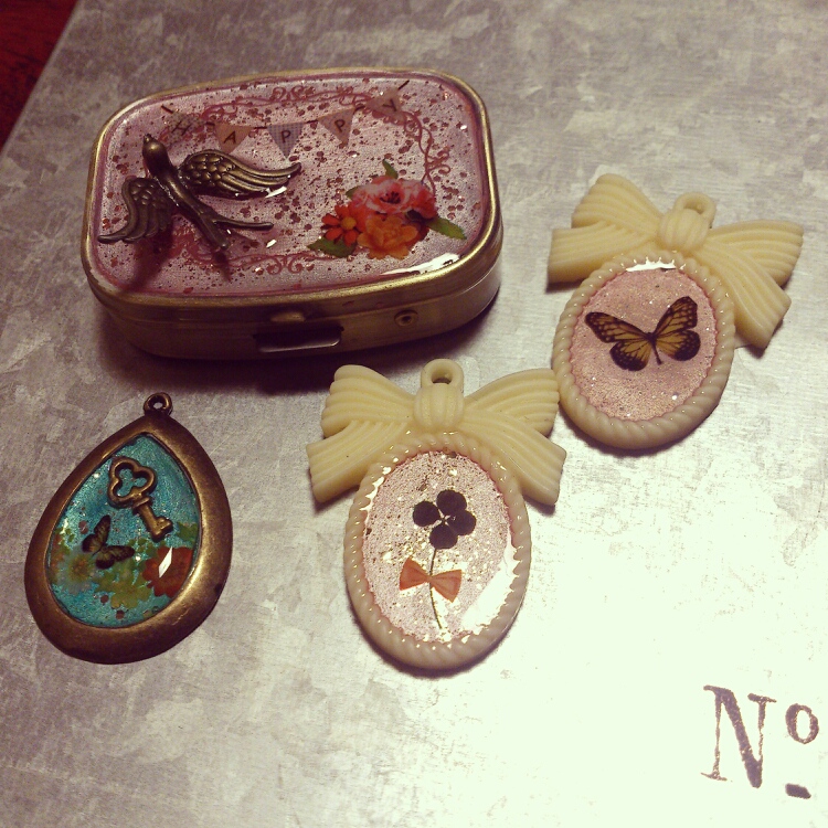 光の加減でとても見にくいのですが、ピルケースとペンダント3種。