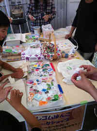 ワークショップは、子供さんも大人の方々もみなさん真剣に思い思いのエコバッグを作られてました。